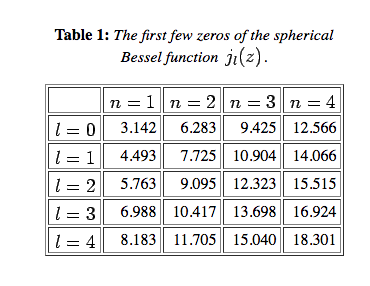 una ecuación a resolver numéricamente, y cuyas soluciones se expresan por tanto en términos de los cerosde la función esférica de Bessel de primera especie
